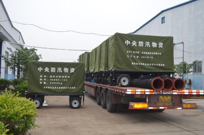 2014年度,在國家防辦組織的“中央防汛抗旱物資”面向全國公開招標活動中標140臺(套)拖車式抽水泵站